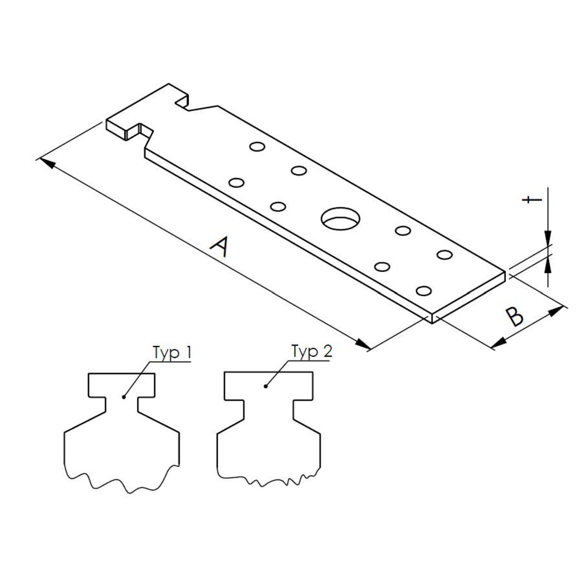 Die Profilanker werden immer beidseitig montiert. Die Befestigung erfolgt mit Gutzeit Kammnägeln 4,0 x 40 oder mit Bolzen der Größe M 12. Es müssen mindestens drei Kammnägel pro Verbindung verwendet werden. Die Verteilung der Nägel soll über die gesamte Fläche erfolgen jedoch muss ein Randabstand von ca. 28 mm eingehalten werden. Die mindest Holzbreite sollte 80 mm betragen.