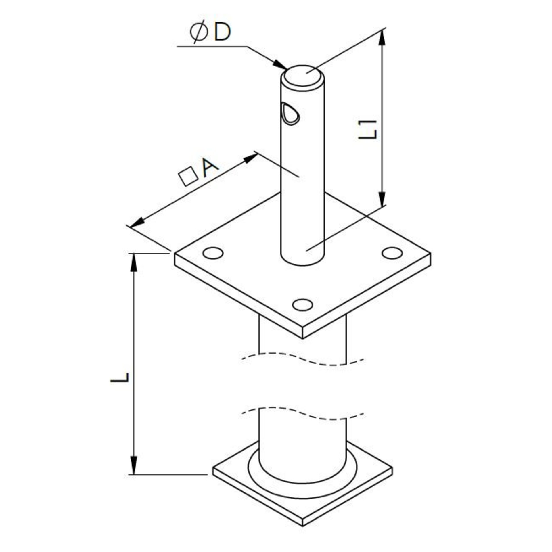 Die Pfostenträger sind für den Anschluss von Holzstützen mit einem Querschnitt ab 10/10 cm geeignet. Die Montage erfolgt von der Stirnseite aus. Für die Aufnahme von Zugkräften wird seitlich ein Stabdübel D = 10 mm eingebracht.