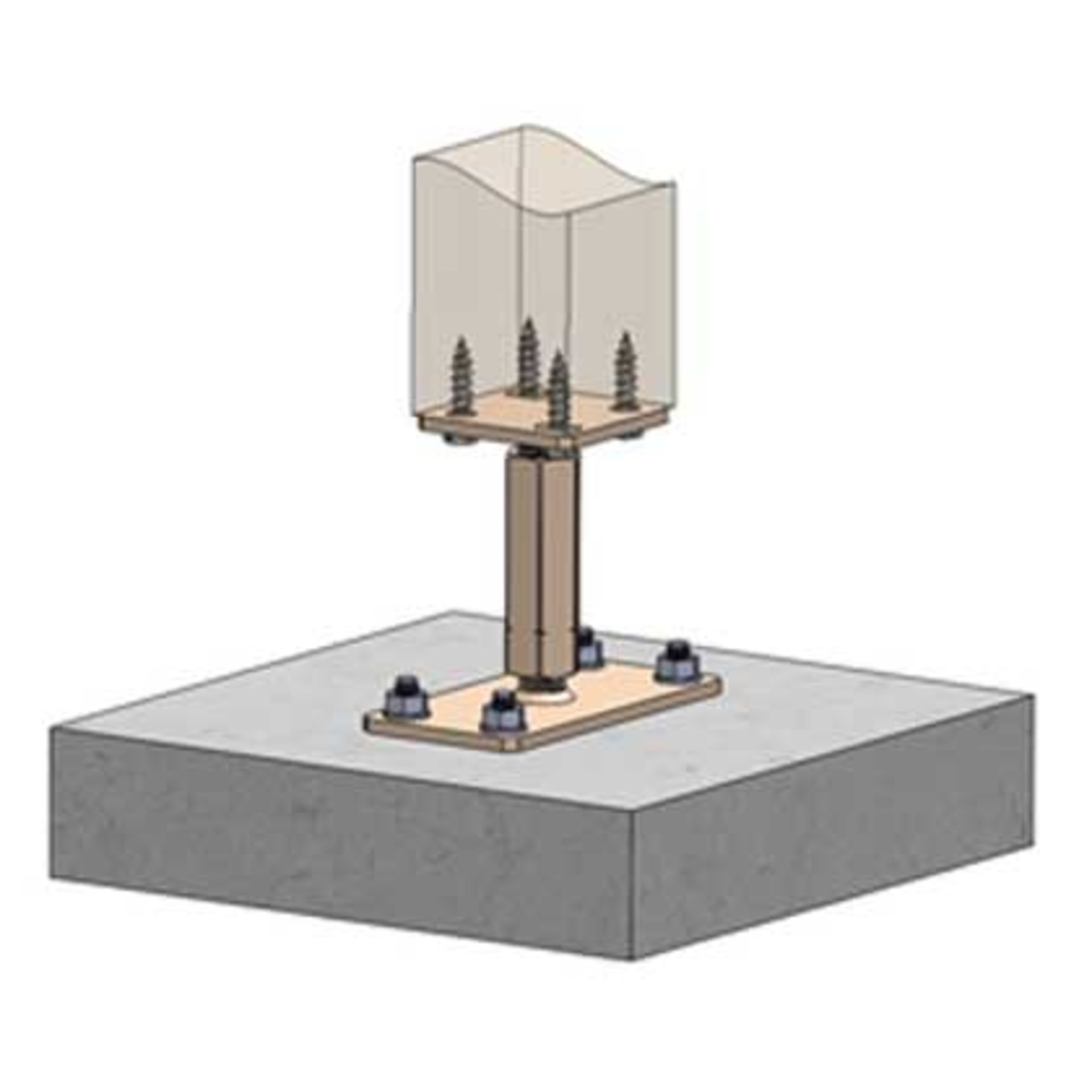 Die Pfostenträger werden zur Befestigung in Leichtbauten wie z.B Carports und Vordächern eingesetzt, bei denen die Möglichkeit einer Höhenverstellung im eingebauten Zustand gegeben sein muss. Durch die unsichtbare Verbindung ist ein konstruktiver Holzschutz gegeben.
